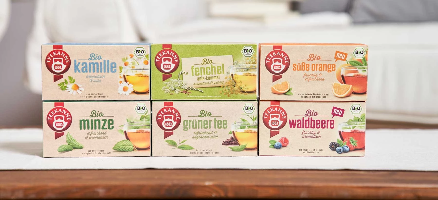 Ob Kräuter- oder Früchtetee – es gibt zahlreiche Möglichkeiten, warme Gedanken an kalten Tagen zu entfachen. Dabei kannst Du mit TEEKANNE auf nachhaltigen Geschmack setzen, wenn Du die Vielfalt unserer Bio-Tees entdeckst. Zahlreiche Sorten sind dazu Fair-Trade-Produkte. Bei uns kannst Du Deinen Tee kaufen und mit Freundinnen und Freunden genießen. Schaffe Dir mit unserem Tee für kalte Tage warme Gedanken und genieße die kalte Jahreszeit.
